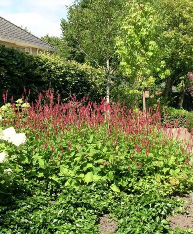 Royale tuin waarin Taxushagen zorgen voor een duidelijke structuur. Dichtbij de woning zijn flinke borders met grote groepen beplanting toegepast. De verspringende zichtlijn gaat via de borders en het ruime gazon naar het eindpunt van de tuin. Een uitnodigende tuin waarin het heerlijk relaxen is.